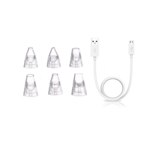 Each Electric Rechargeable Blackhead Remover comes with a USB charging cable and six extra nozzle heads to treat the face and body.