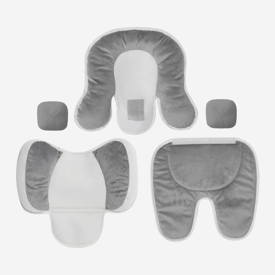 Smaller newborns and infants need extra support in their car seats and strollers to be snug safe and secure. Our Infant To Toddler Head & Body Support is a safe and comfortable solution to keep the baby’s head, neck and back supported when on the go. The set includes 5 pieces: head, body, base, and 2 support cushions.